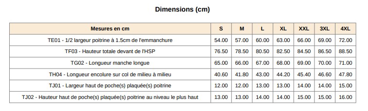 Elle est dotée d’une poche poitrine côté gauche en forme de V, d’un empiècement dos double avec deux plis d’aisance pour plus de confort, et d’un bas arrondi qui permet de la porter aussi bien rentrée que sortie. Les poignets sont réglables à angles abattus avec patte capucin boutonnée et deux boutons de rappel.