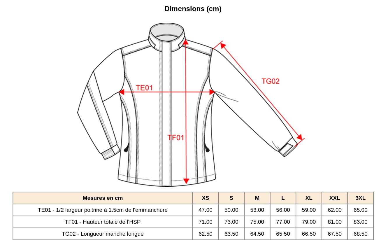 • Tailles disponibles du XS au 3XL