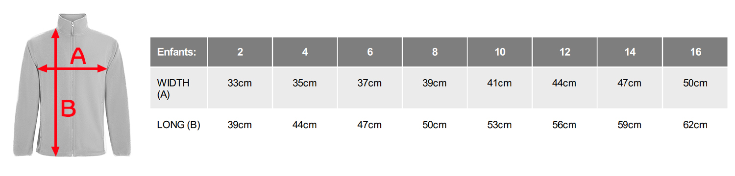 Disponible en tailles de 2 à 16 ans, cette polaire constitue un support publicitaire textile efficace pour valoriser une marque auprès d'un jeune public.