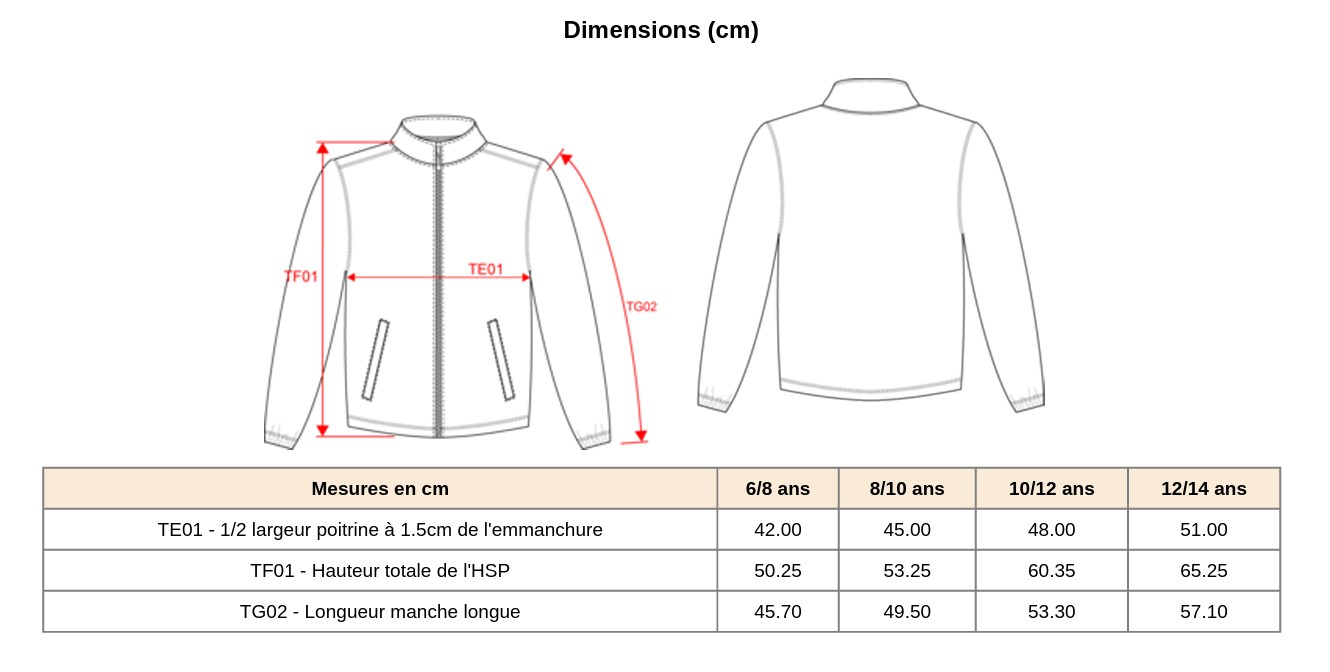 • Tailles : 6/8ans au 12/14ans