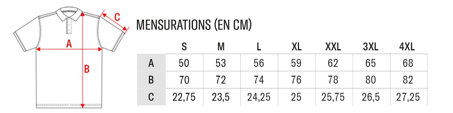 • Taille S au 4XL