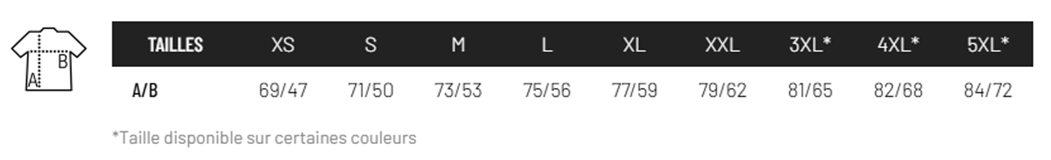 Prix unitaire XS au XXL 22.20 13.32 12.33 11.68 10.74 9.79 9.51 9.12 8.88