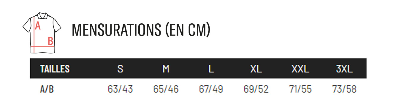 Impression 2 couleurs - Poitrine - S au XXL 25.92 14.10 7.30 3.60 2.40 1.50 1.20 1.10