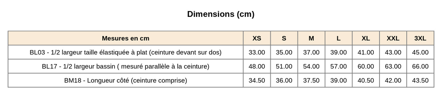 Notre guide des tailles