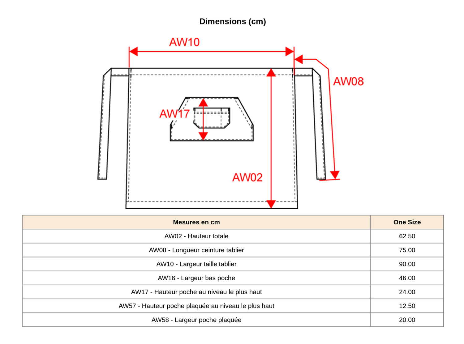 Ce tablier est fabriqué en 100 % coton avec un grammage de 280 g/m², offrant une bonne tenue et un confort adapté à un port quotidien. Il est lavable en lavage domestique à 60°, ce qui facilite son entretien en environnement professionnel. Ses dimensions généreuses de 62,5 cm de hauteur sur 90 cm de largeur assurent une protection efficace du buste jusqu'aux jambes.