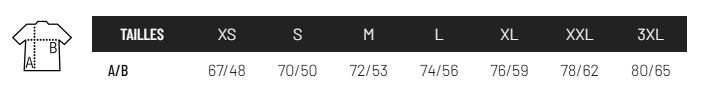 • Tailles disponibles du XS au 3XL